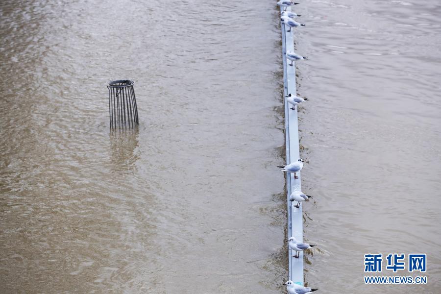 2月3日,人们走在法国巴黎水位上涨的塞纳河畔。 近日,由于连日降雨,法国巴黎塞纳河水位持续上涨。 新华社记者 高静 摄