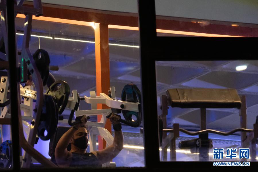 2月4日,一名佩戴口罩的男子在西班牙马德里一家健身房内健身。 西班牙卫生部4日发布的统计数据显示,该国3日14时至4日14时新增新冠确诊病例29960例,累计新冠确诊病例超过290万例,达2913425例。 新华社记者 孟鼎博 摄