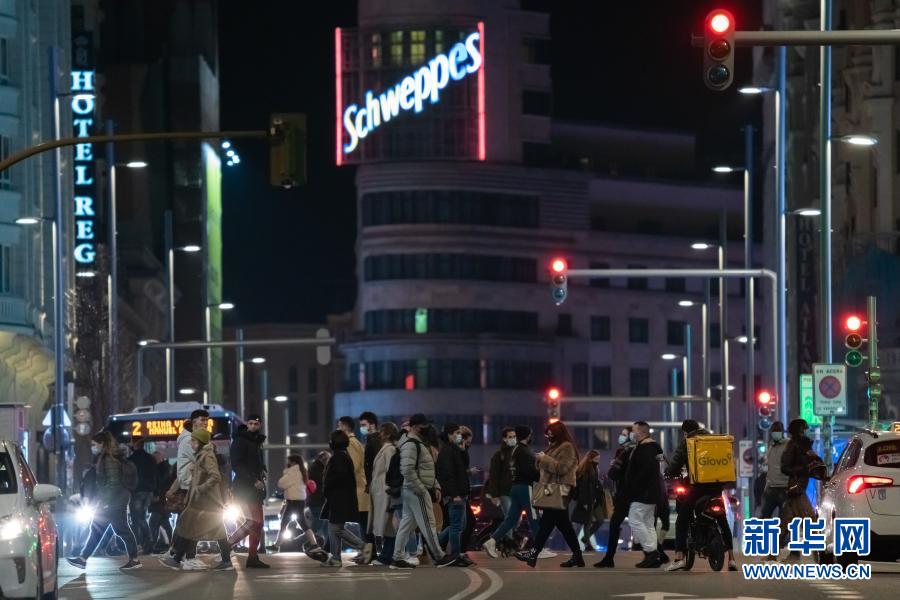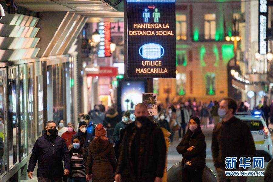 2月4日,佩戴口罩的市民走过西班牙马德里卡利亚奥广场。 西班牙卫生部4日发布的统计数据显示,该国3日14时至4日14时新增新冠确诊病例29960例,累计新冠确诊病例超过290万例,达2913425例。 新华社记者 孟鼎博 摄
