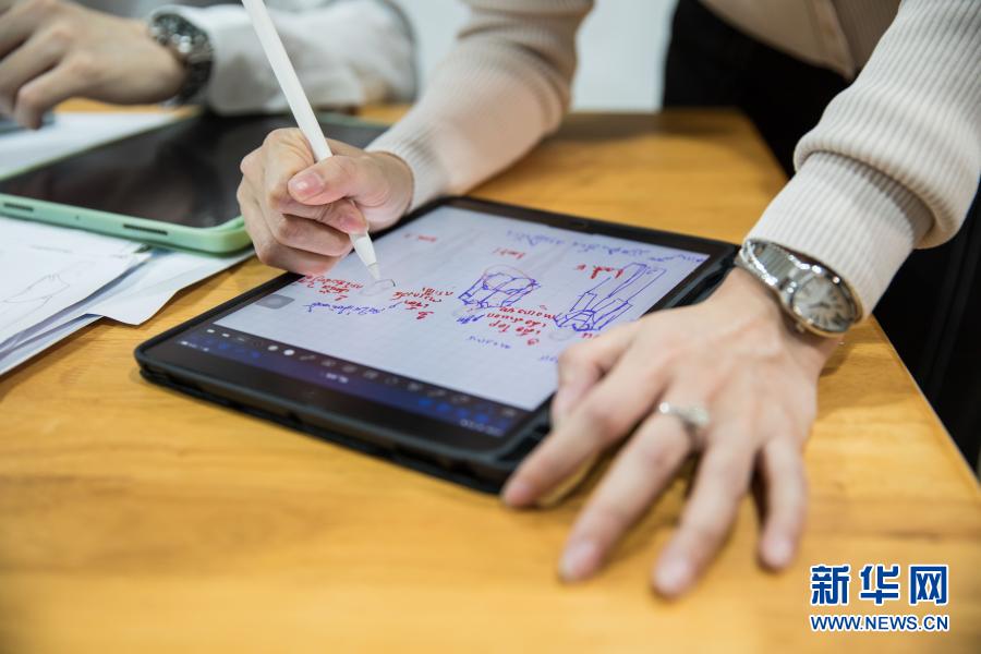 2月3日,朋帕维在自己位于泰国曼谷的网络服装店办公室内画草图。新华社记者 张可任 摄