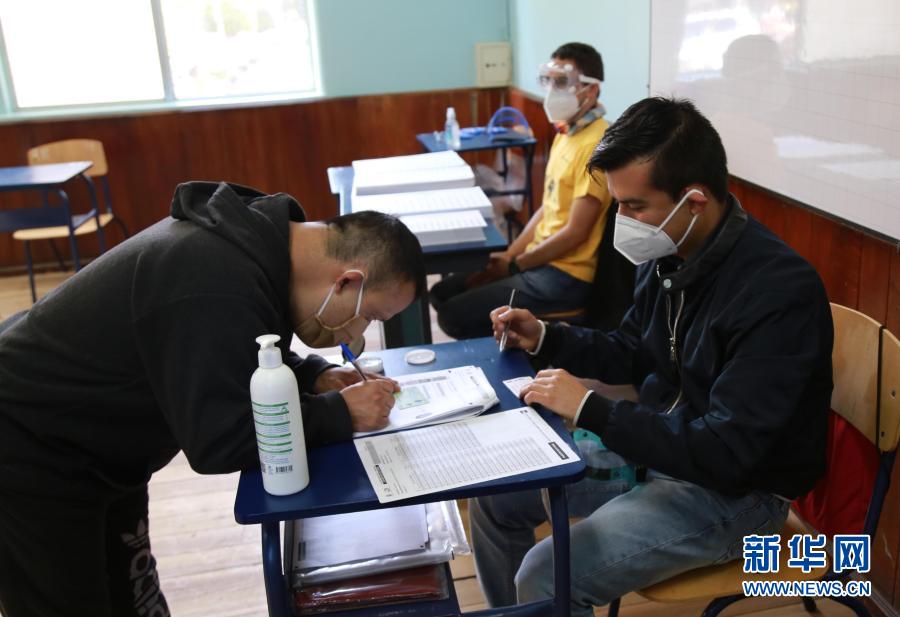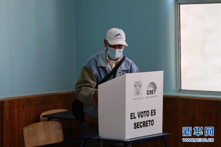 2月7日,选民佩戴口罩在厄瓜多尔基多的一处投票站参与投票。 厄瓜多尔7日举行总统和国民代表大会(议会)选举,1309万选民将投票选出新一届总统和国民代表大会议员。为避免民众大规模聚集增加感染风险,厄全国选举委员会规定,投票当天进入投票点的选民须佩戴口罩、进行手部消毒而且相互之间必须保持2米以上的安全距离。此外,厄政府还提倡选民根据身份证尾号按建议时段到投票站投票。 新华社记者 郝云甫 摄