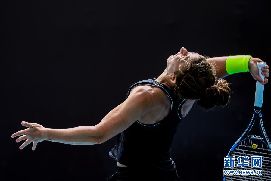 2月8日,中国选手王蔷在比赛中发球。 当日,在墨尔本进行的澳大利亚网球公开赛女单首轮比赛中,中国选手王蔷以1比2不敌意大利选手埃拉尼,无缘下一轮。 新华社记者 白雪飞 摄