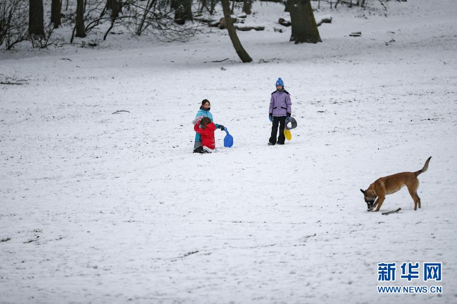 2月8日,儿童在比利时布鲁塞尔的一处公园玩耍。
