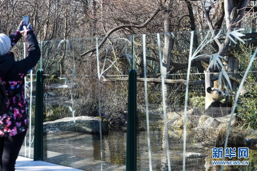 2月14日,游客在奥地利维也纳美泉宫动物园拍摄大熊猫“阳阳”。新华社记者 郭晨 摄