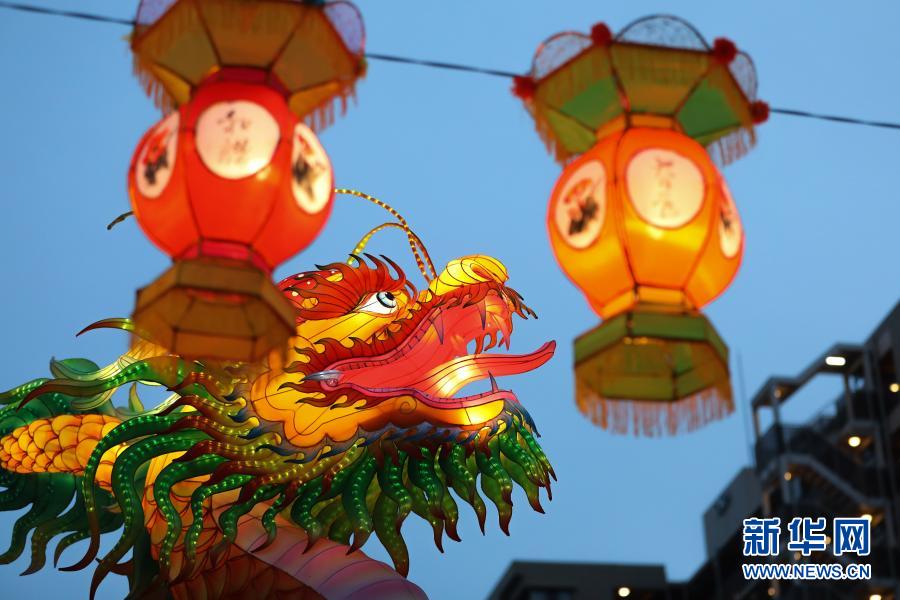 这是2月12日在日本横滨中华街的公园内拍摄的花灯。新华社记者 杜潇逸 摄