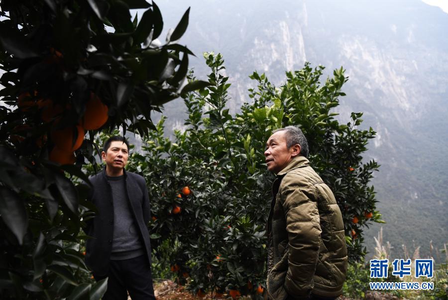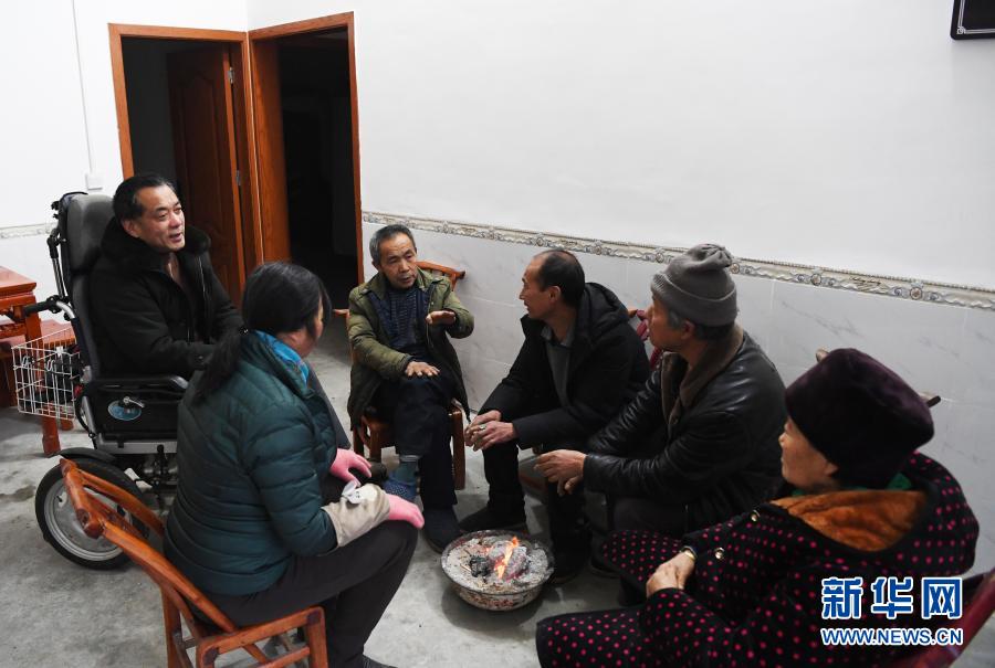 1月6日,毛相林(中)和下庄村村民交流。新华社记者 王全超 摄