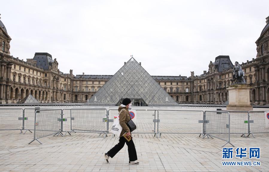 2月19日,行人走过因疫情而关闭的法国巴黎卢浮宫博物馆。