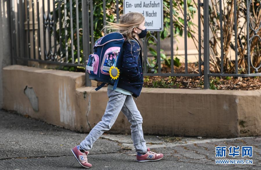 2月22日,在德国法兰克福,一名小学生去上学。自当日起,随着新冠防疫措施的逐步宽松,德国部分联邦州的学校和日托中心复课。新华社记者 逯阳 摄