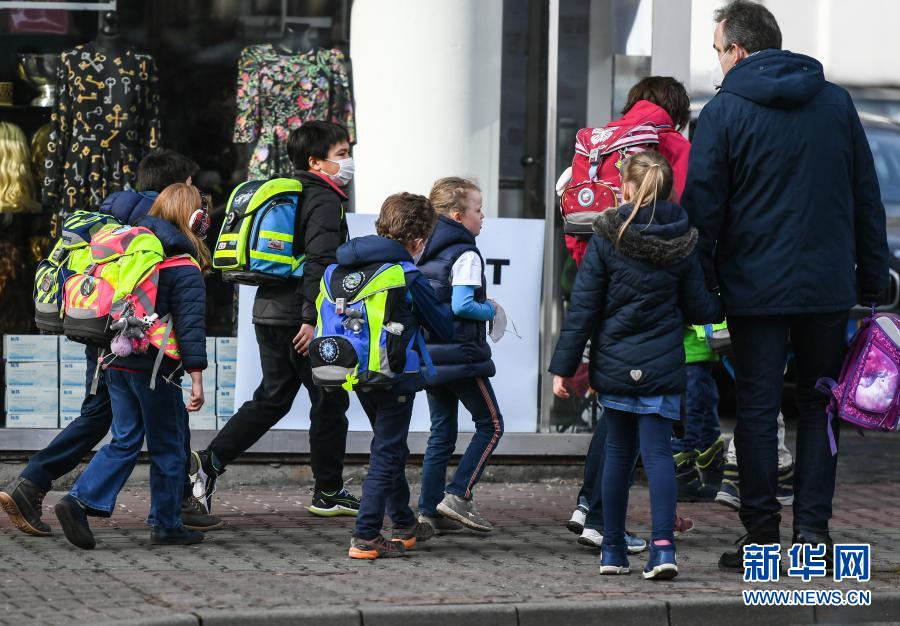 2月22日,在德国法兰克福,一些小学生上完课后离开学校。自当日起,随着新冠防疫措施的逐步宽松,德国部分联邦州的学校和日托中心复课。新华社记者 逯阳 摄