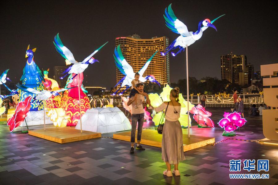 2月7日,顾客在泰国曼谷暹罗天地商场参观花灯。 泰国将2021年中国春节列为泰国法定假日。随着节日临近,曼谷多家商场用中国元素装点一新,吸引顾客到来。 新华社记者 张可任 摄