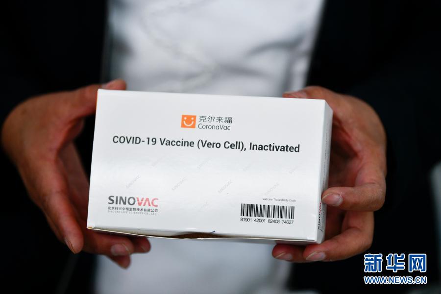 2月22日,在墨西哥埃卡特佩克,医务人员展示中国科兴新冠疫苗。