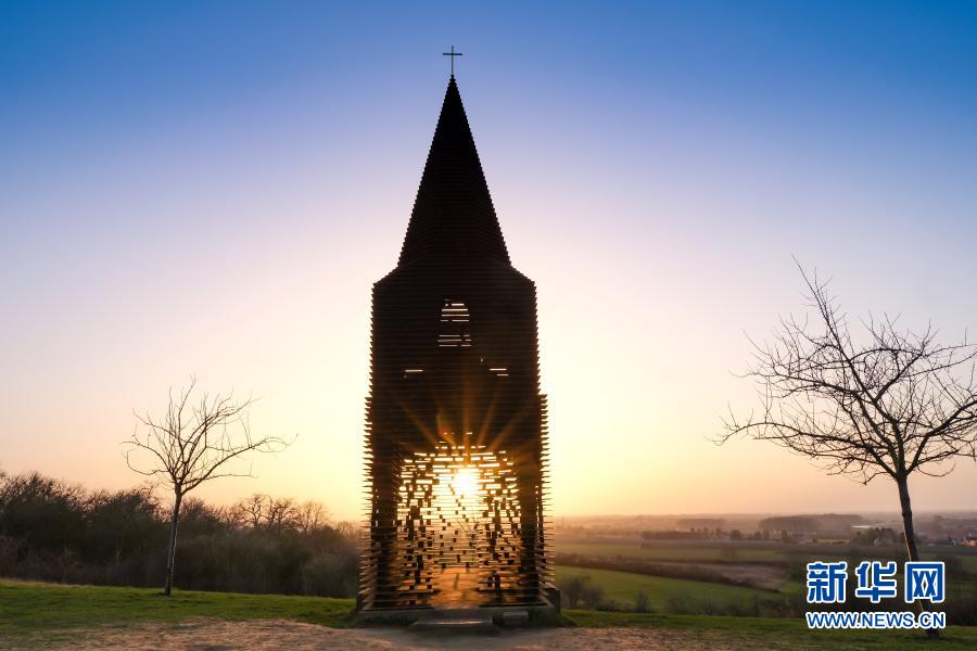这是2月24日在比利时小镇博尔赫隆附近拍摄的“透明教堂”与落日景观。新华社记者 张铖 摄 |