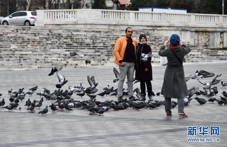 2月25日,游客在土耳其伊斯坦布尔的塔克西姆广场拍照。 土耳其国家统计局日前公布的数据显示,受新冠疫情影响,土耳其2020年旅游收入约为120亿美元,较上年减少近三分之二。 新华社记者 徐速绘 摄
