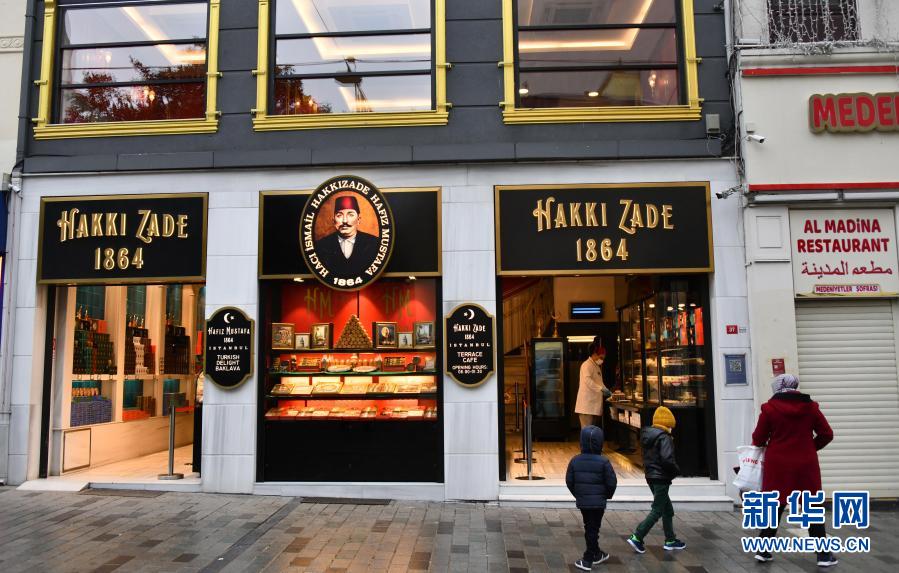 2月25日,在土耳其伊斯坦布尔的商业步行街,行人经过一家销售土耳其传统糕点的商店。 土耳其国家统计局日前公布的数据显示,受新冠疫情影响,土耳其2020年旅游收入约为120亿美元,较上年减少近三分之二。 新华社记者 徐速绘 摄 |