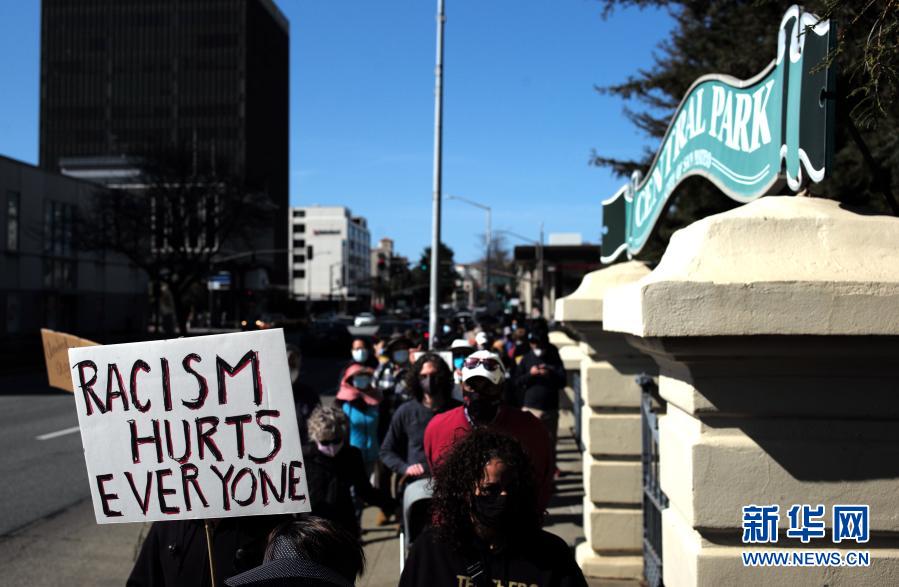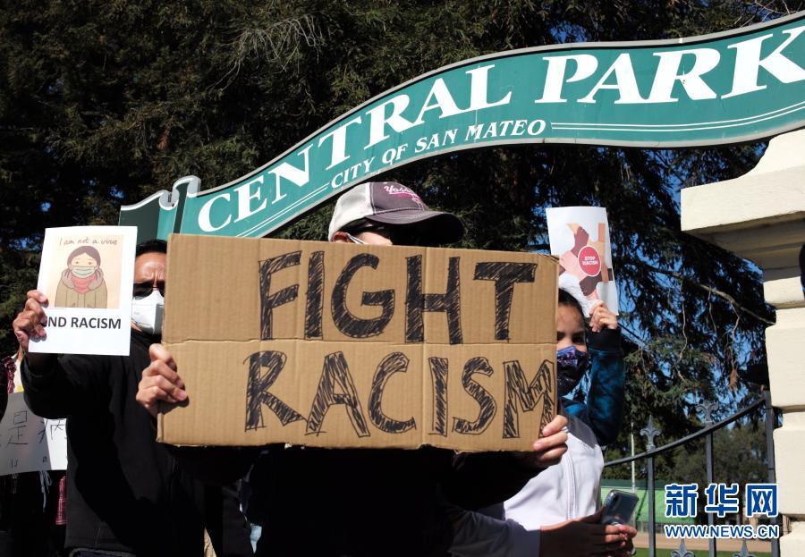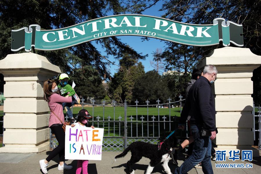 2月27日,在美国加利福尼亚州旧金山湾区圣马特奥市,人们参加集会反对针对亚裔的歧视行为和仇恨犯罪。 今年1月以来,美国针对亚裔的歧视行为和仇恨犯罪事件数量继续上升。美国司法部高级官员26日表示,司法部将就仇恨犯罪问题展开调查。 新华社记者 吴晓凌 摄