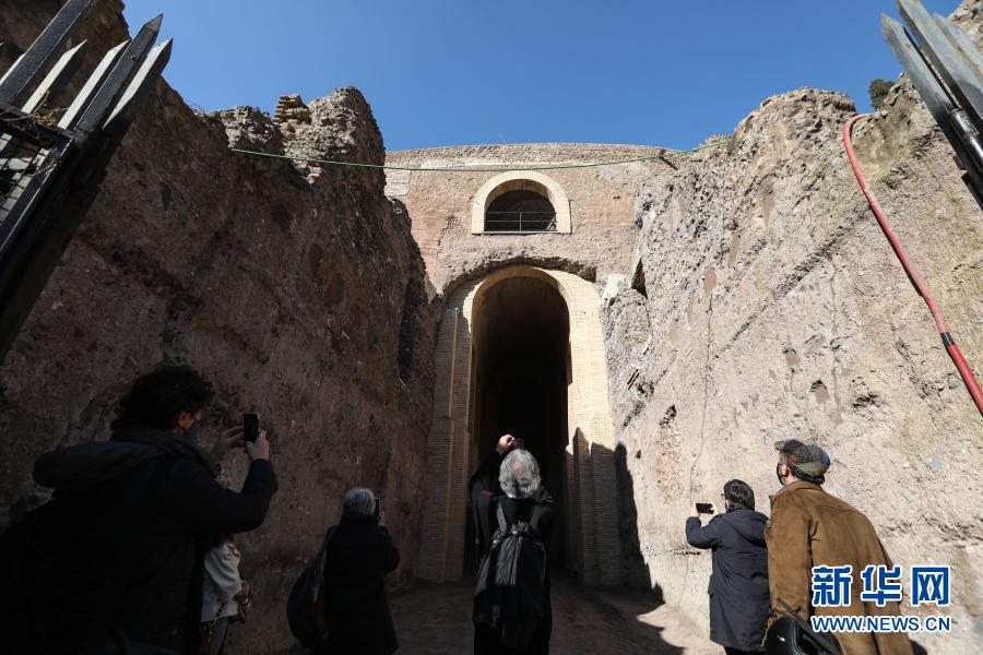 3月1日,记者们拍摄意大利罗马的奥古斯都陵墓入口。