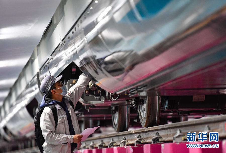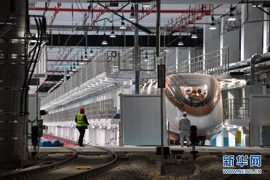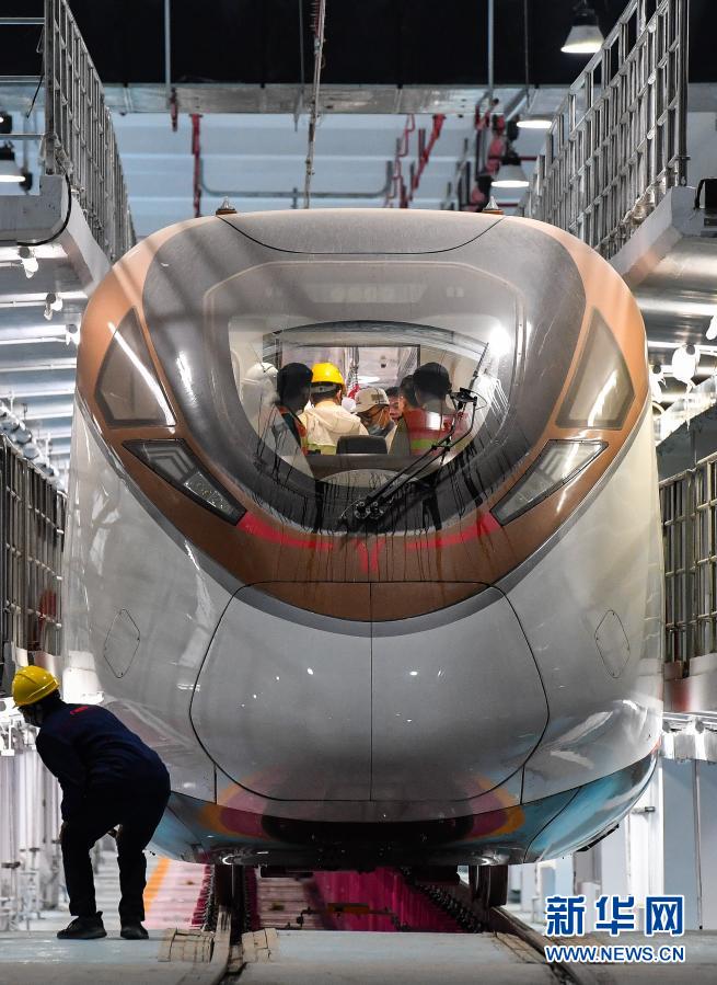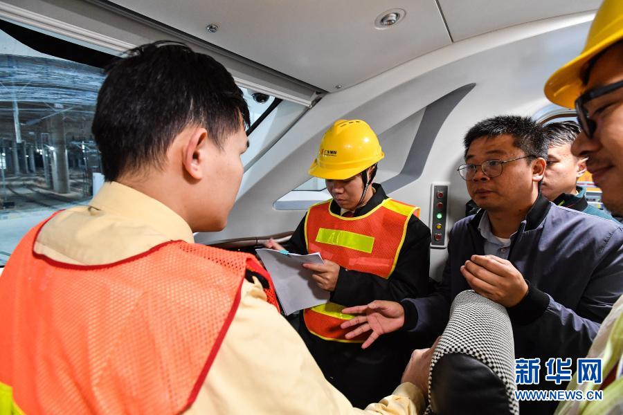 3月2日,技术人员对广州地铁18号线时速160公里电客车进行设备检查。 3月3日凌晨,广州地铁18号线时速160公里电客车在横番3号风井至番禺广场站段进行全线首次热滑试验,以对该线地铁供电、信号、通信、线路、机电等系统设备进行全面检测。 新华社发(王荃荃摄)
