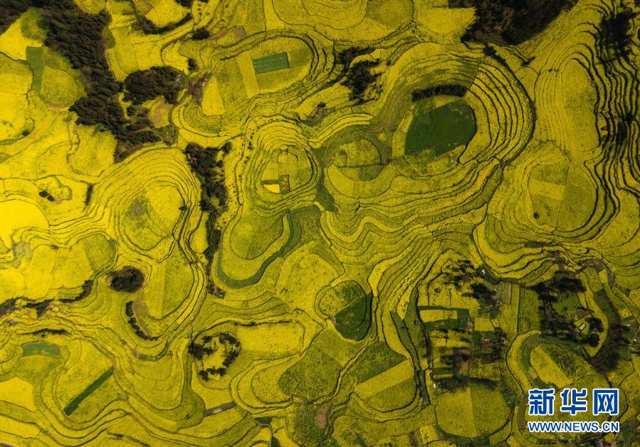 这是在罗平县螺丝田景区拍摄的油菜花(3月2日摄,无人机照片)。新华社记者 王冠森 摄