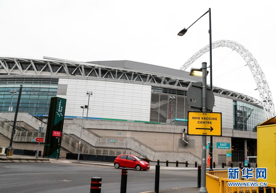 这是3月4日在英国伦敦温布利球场附近拍摄的一个新冠疫苗接种中心的路标。新华社记者 韩岩 摄 |