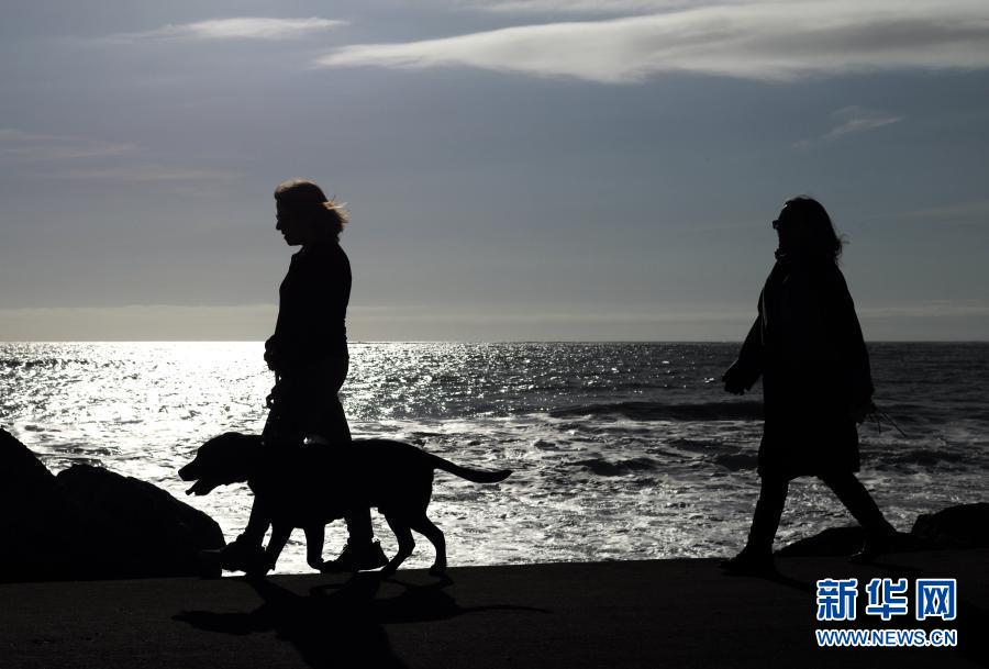 3月5日,人们在美国加利福尼亚州半月湾市海边散步。 半月湾所在的圣马特奥县目前已从加州四级防疫层级中最高的“紫色”等级进入“红色”等级。餐馆可以恢复堂食。电影院、博物馆和健身房等室内活动在控制客流的前提下重新开放,并放宽了人员在室外活动的时间限制。新华社记者 吴晓凌 摄