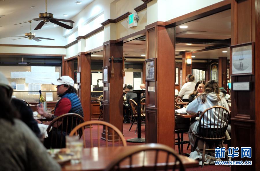 3月5日,人们在美国加利福尼亚州半月湾市一家餐馆内用餐。 半月湾所在的圣马特奥县目前已从加州四级防疫层级中最高的“紫色”等级进入“红色”等级。餐馆可以恢复堂食。电影院、博物馆和健身房等室内活动在控制客流的前提下重新开放,并放宽了人员在室外活动的时间限制。新华社记者 吴晓凌 摄 |
