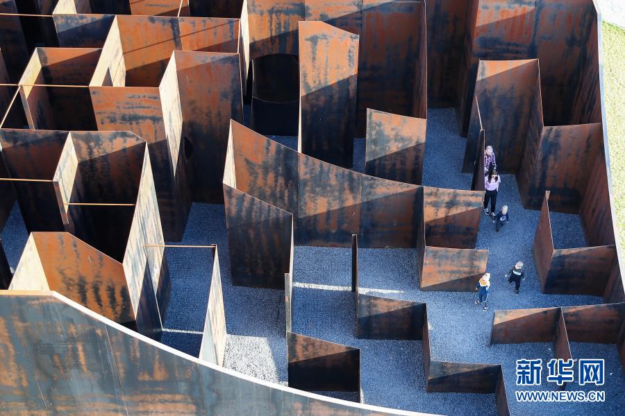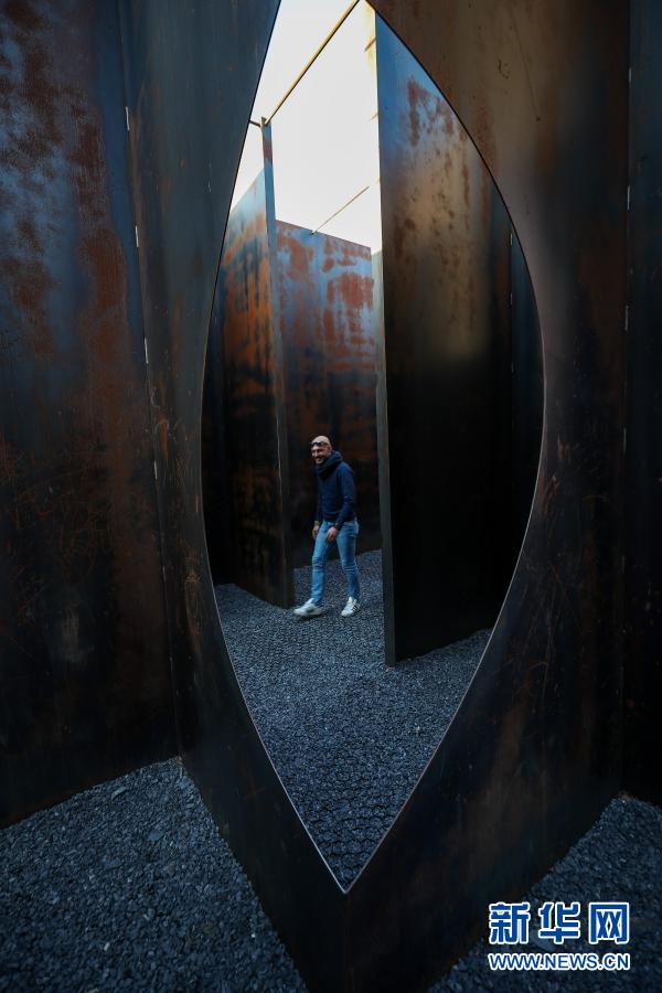 3月2日,一名游客在比利时亨克市C-Mine艺术中心的装置作品“迷宫”里参观。 在比利时亨克市由旧矿区改建的C-Mine艺术中心广场上,有一件名为“迷宫”的装置艺术作品,“迷宫”由钢板搭建而成。作品构思巧妙,设计师利用几何结构创造出全新的空间体验,人们走在其中仿佛在看一场雕塑展,因此又被称之为“雕塑迷宫”。新华社记者 张铖 摄