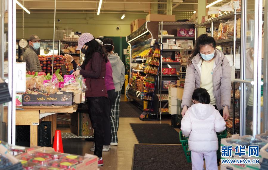 3月6日,顾客在美国加利福尼亚州米尔布雷一家商店内购买生活用品。新华社记者 吴晓凌 摄