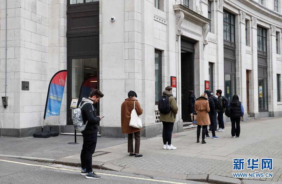 3月8日,学生排队等待进入英国伦敦的国王学院。新华社记者 韩岩 摄