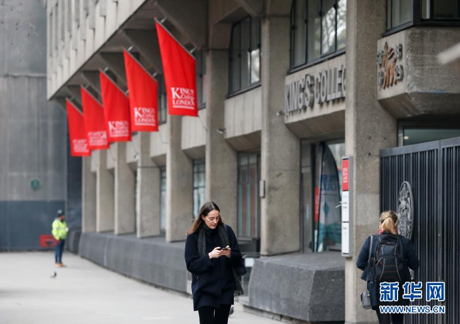 3月8日,人们走过英国伦敦的国王学院门口。新华社记者 韩岩 摄