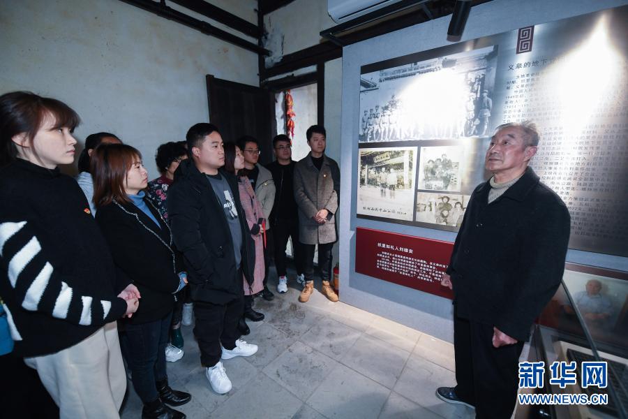 3月9日,在织里镇义皋村的党史馆,76岁的村民宣亚鑫(右一)给年轻党员们介绍当地的革命历史以及老一辈共产党员的事迹。 近期,为迎接中国共产党成立100周年,倡导基层党员群众深入学习党史、铭记党史,浙江省湖州市吴兴区织里镇党委政府特别推出“学习百年党史、践行初心使命”主题活动。通过走红色故地、听革命故事等方式,组织乡镇基层党员学习党史,激励基层党员砥砺初心、接续奋斗。 新华社记者 徐昱 摄 |