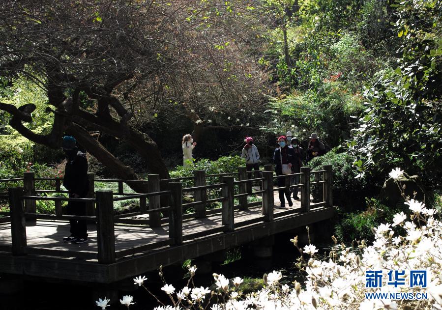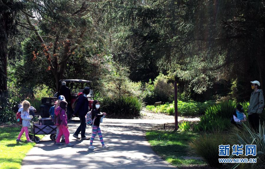 3月8日,游客在美国加利福尼亚州旧金山植物园游览。 旧金山3月3日起从加州四级防疫层级中最高的“紫色”等级进入“红色”等级,餐馆恢复堂食,电影院、博物馆和健身房等室内活动在控制客流的前提下重新开放,并放宽了人员在室外活动的限制。 新华社记者 吴晓凌 摄