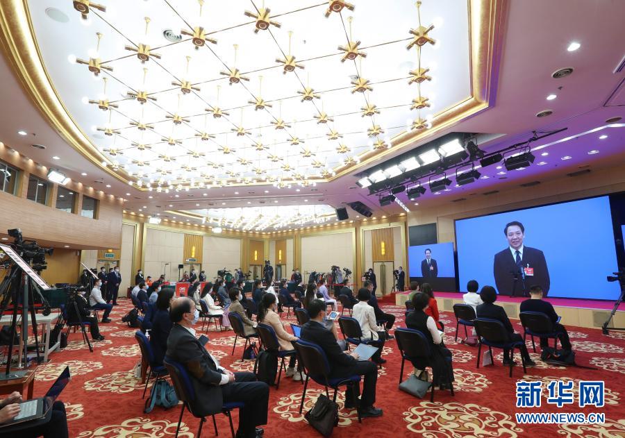 3月10日,全国政协十三届四次会议第三场“委员通道”采访活动在北京人民大会堂新闻发布厅举行。这是记者在分会场通过网络视频方式提问。新华社记者 李木子 摄