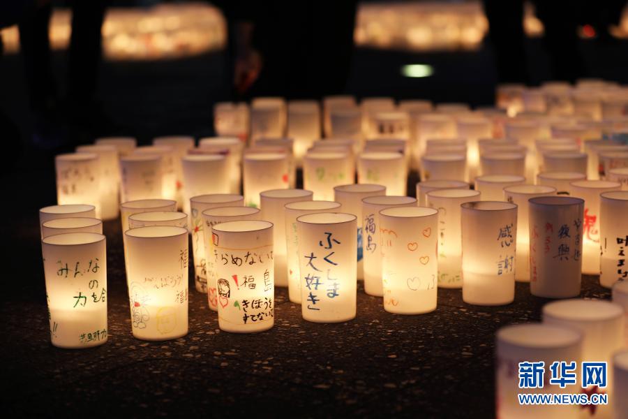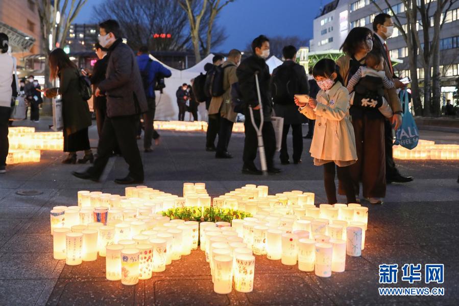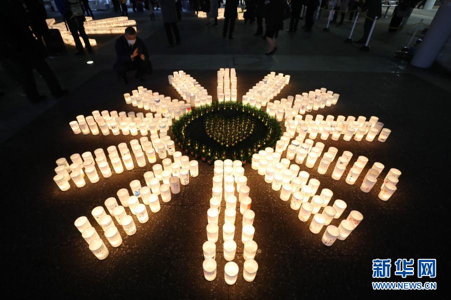 3月11日,在日本福岛县福岛市,人们用点燃蜡烛的方式悼念“3·11”大地震遇难者。 3月11日是日本发生“3·11”特大地震灾害10周年纪念日。当天,日本全国各地举办不同形式的活动,悼念“3·11”大地震及海啸遇难者。日本警察厅本月10日公布的最新统计数据显示,“3·11”大地震共造成15899人遇难,2526人失踪。加上灾后因“长期避难致健康恶化”等死亡的3775人,截至目前,“3·11”大地震造成至少2.22万人死亡和失踪。新华社记者杜潇逸摄