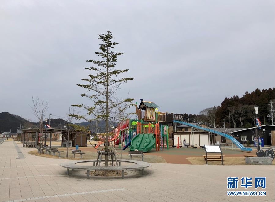 这是3月12日拍摄的日本岩手县陆前高田市商业区内的儿童娱乐设施,该商业区为灾后重建。