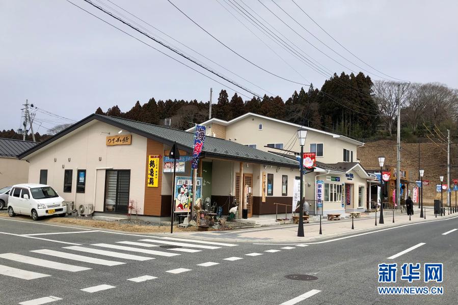 这是3月12日拍摄的日本岩手县陆前高田市商业区内的料理店,该商业区为灾后重建。