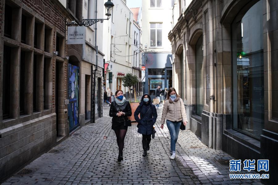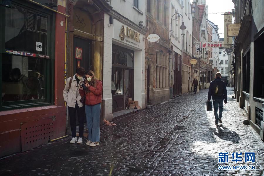 3月13日,人们走在比利时布鲁塞尔大广场附近的街道上。新华社记者 张铖 摄