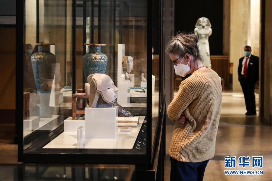 3月16日,一名女子在德国柏林新博物馆参观。 因新冠疫情关闭数月后,柏林部分博物馆当日重新开放,游客需预先网上订票进馆参观并遵守防疫规定。 新华社记者单宇琦摄