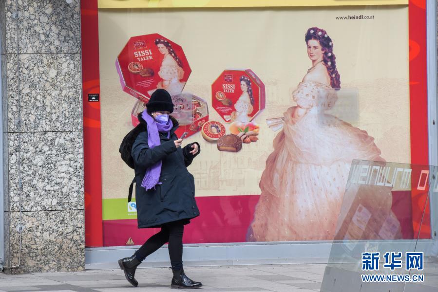 3月18日,戴口罩的市民走在奥地利维也纳街头。新华社记者 郭晨 摄