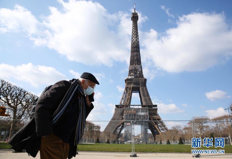 3月19日,戴口罩的行人从法国巴黎战神广场走过。新华社记者高静摄