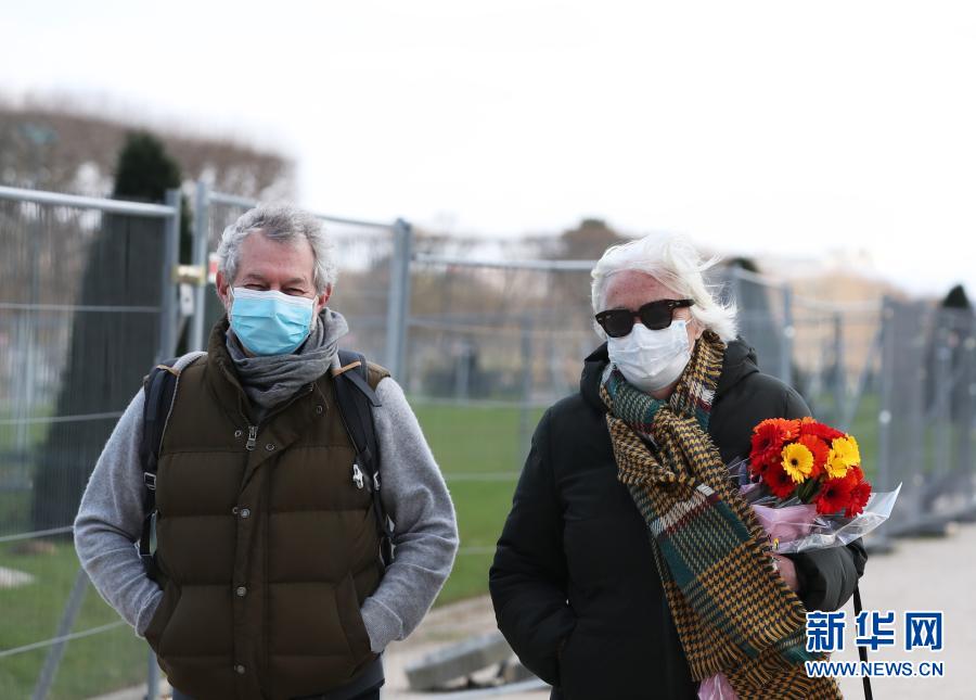 3月19日,戴口罩的行人从法国巴黎战神广场走过。新华社记者高静摄