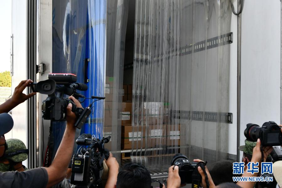 由中国军事科学院军事医学研究院和康希诺公司联合研发的首批新冠疫苗22日在墨西哥中部克雷塔罗州完成灌装,并在中墨双方举行的交接仪式后运送到墨政府指定的疫苗存放地。