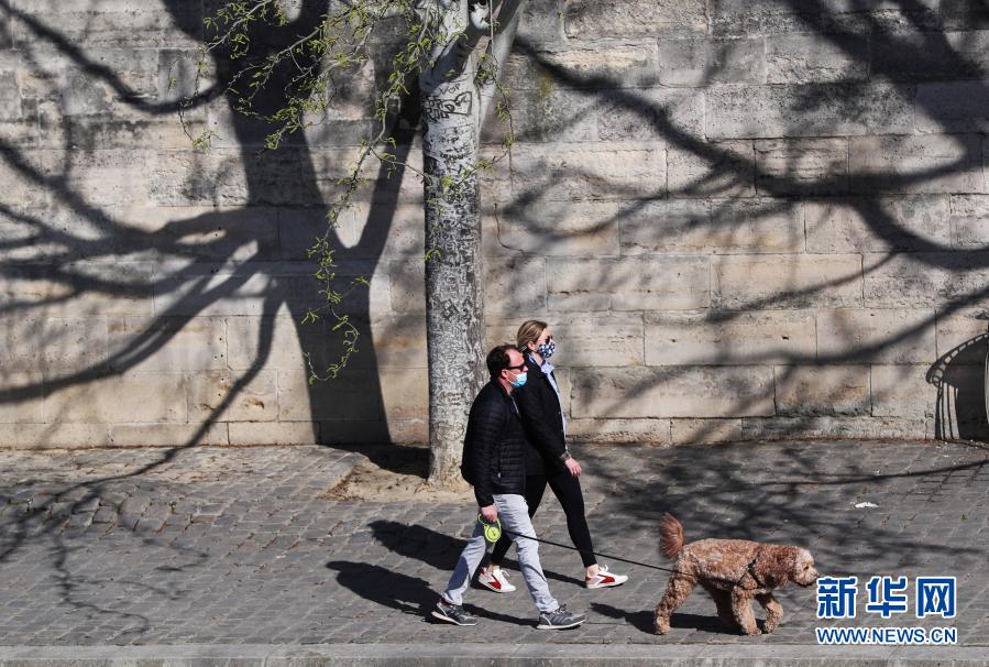 3月24日,人们在法国巴黎塞纳河畔散步。 当日,法国巴黎天气晴好,一些民众在遵守防疫规定的前提下走出家门,享受春日阳光。新华社记者高静摄