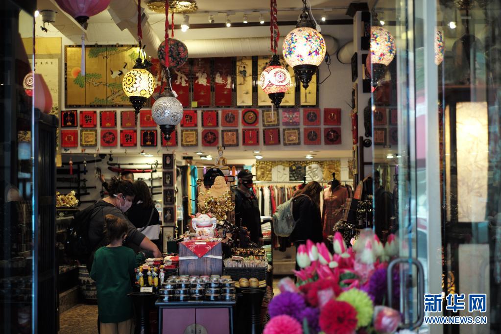 3月24日,人们在美国加利福尼亚州旧金山唐人街的商店内选购商品。 美国旧金山23日进入加州“紫、红、橙、黄”四级防疫层级中相对宽松的“橙色”等级。24日起,市内大部分商业活动可以在控制客流的前提下重新开放。 新华社记者 吴晓凌 摄