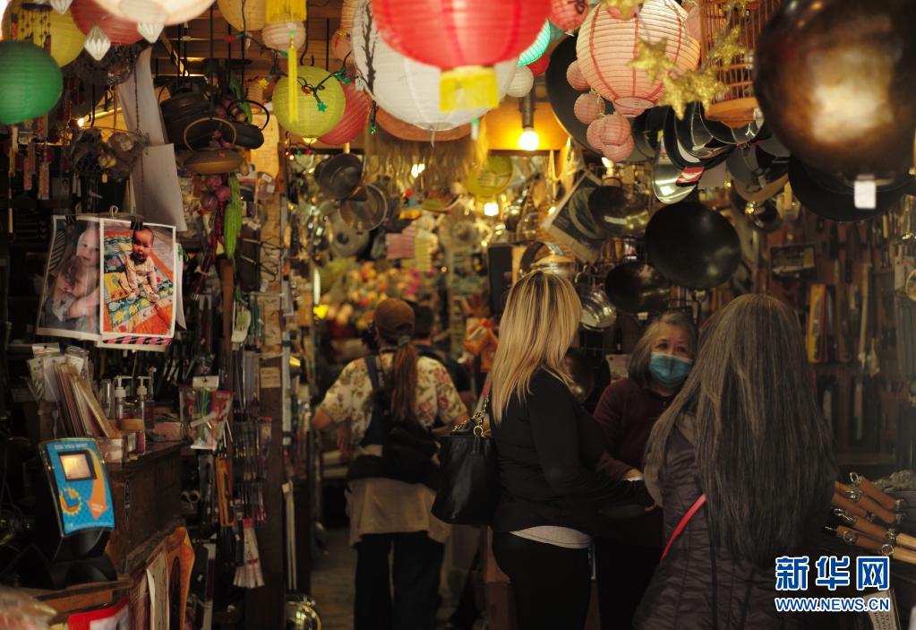 3月24日,人们在美国加利福尼亚州旧金山唐人街的商店内选购商品。