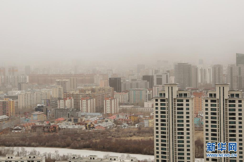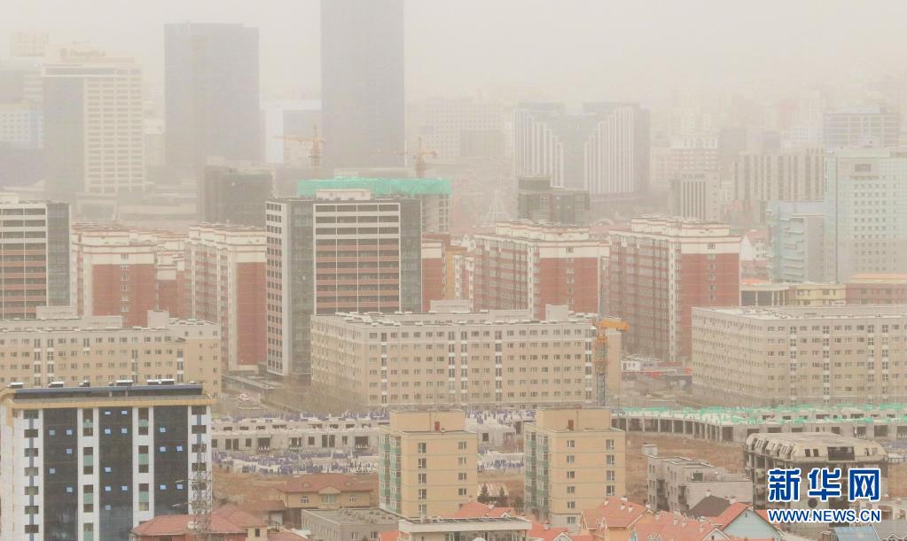 这是3月27日拍摄的蒙古国乌兰巴托市。 蒙古国紧急情况总局27日发布警报说,26日起在蒙古国西部地区形成的强风、沙尘暴和暴风雪天气正逐渐影响全境。 新华社记者 阿斯钢 摄