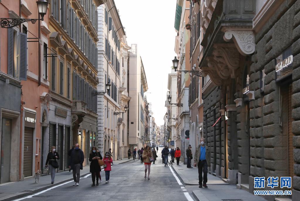 3月27日,人们走在意大利首都罗马的孔多蒂街上。