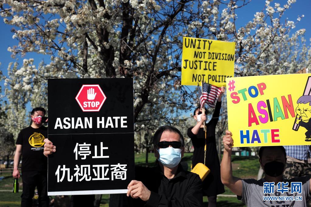 3月28日,人们在美国加利福尼亚州都柏林参加集会,抗议针对亚裔的歧视行为和仇恨犯罪。 当日,来自美国阿拉米达县、都柏林市等地民众在加利福尼亚州旧金山湾区都柏林市举行集会,抗议针对亚裔的歧视行为和仇恨犯罪。 新华社记者 吴晓凌 摄