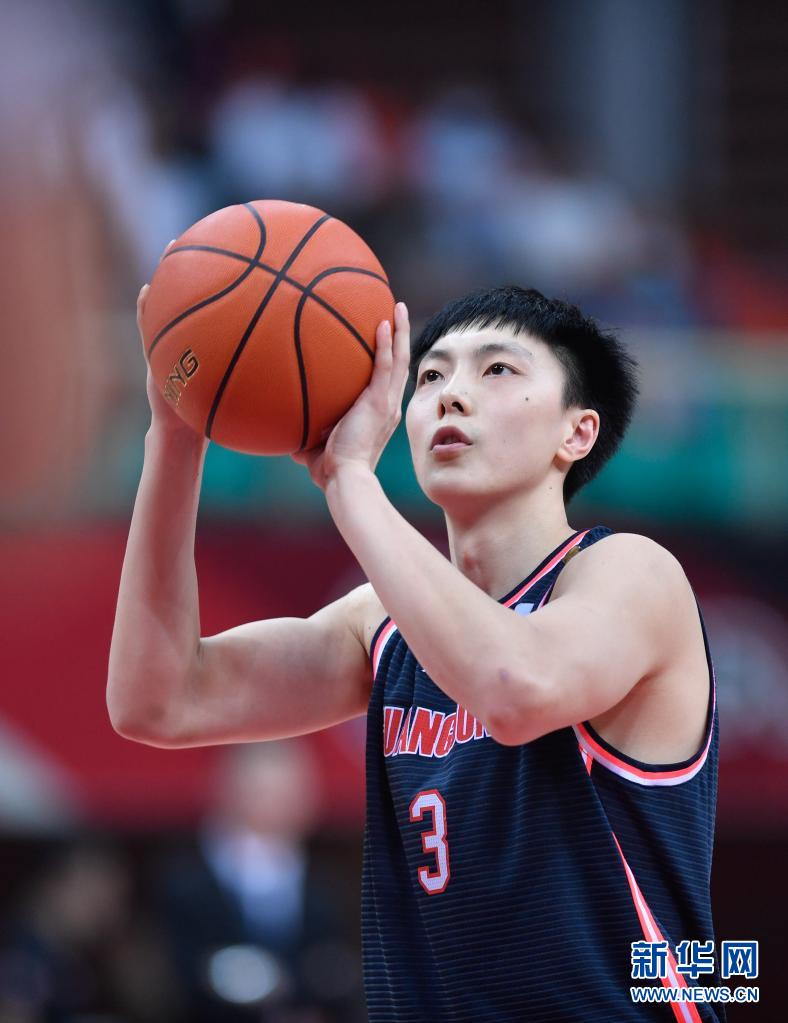 3月29日,广东东莞大益队球员胡明轩在比赛中罚篮。