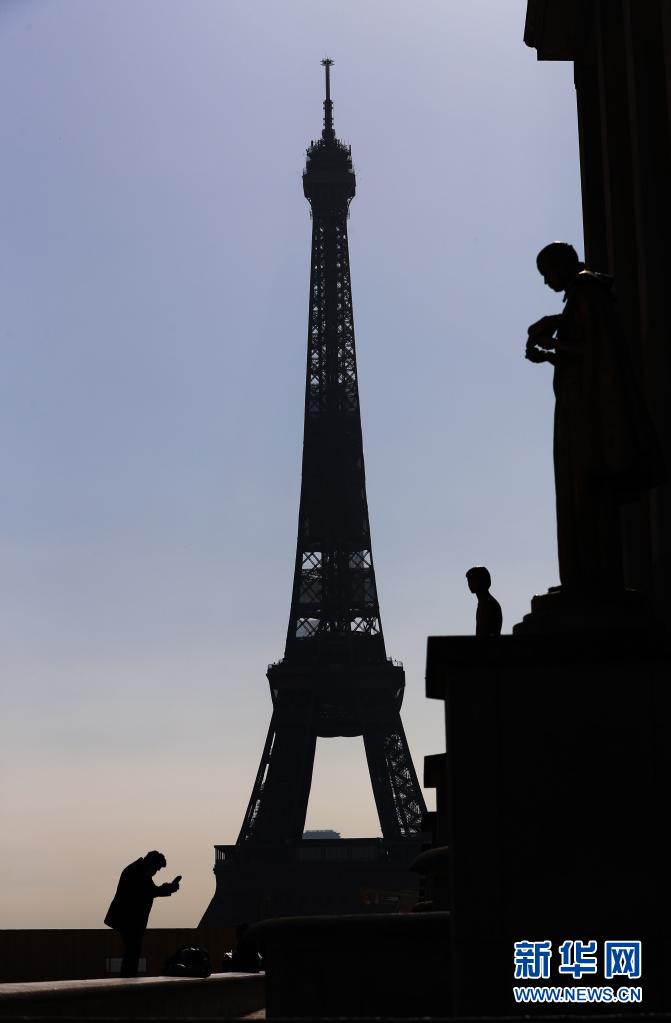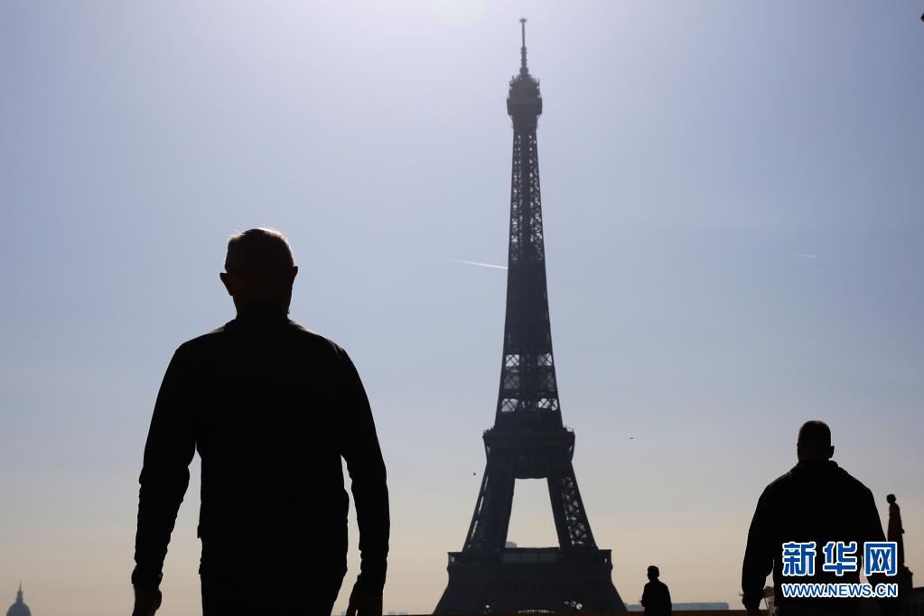 3月31日,人们走在法国巴黎埃菲尔铁塔附近的特罗卡德罗广场。 法国总统马克龙3月31日宣布,法国将在本土所有地区执行封闭隔离措施,以遏制新冠疫情。 新华社记者 高静 摄