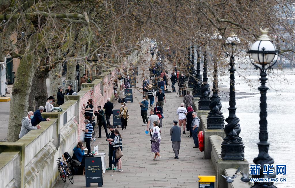 3月31日,志愿者们在英国伦敦的国家新冠纪念墙上画红色的心,行人从一旁走过。 为了纪念在新冠疫情中去世的人们,英国伦敦议会大厦对面的泰晤士河沿岸设立了国家新冠纪念墙。逝者的亲友和志愿者从本周开始在几百米长的纪念墙上画上红色的心,每一颗心代表一名因新冠去世的英国人,表达对逝者的哀思。 新华社记者 韩岩 摄